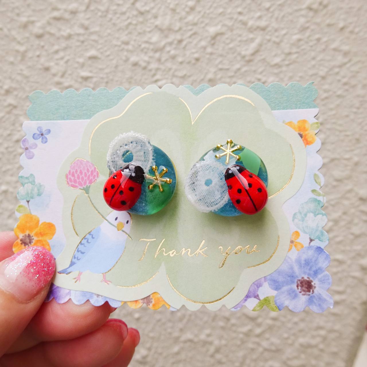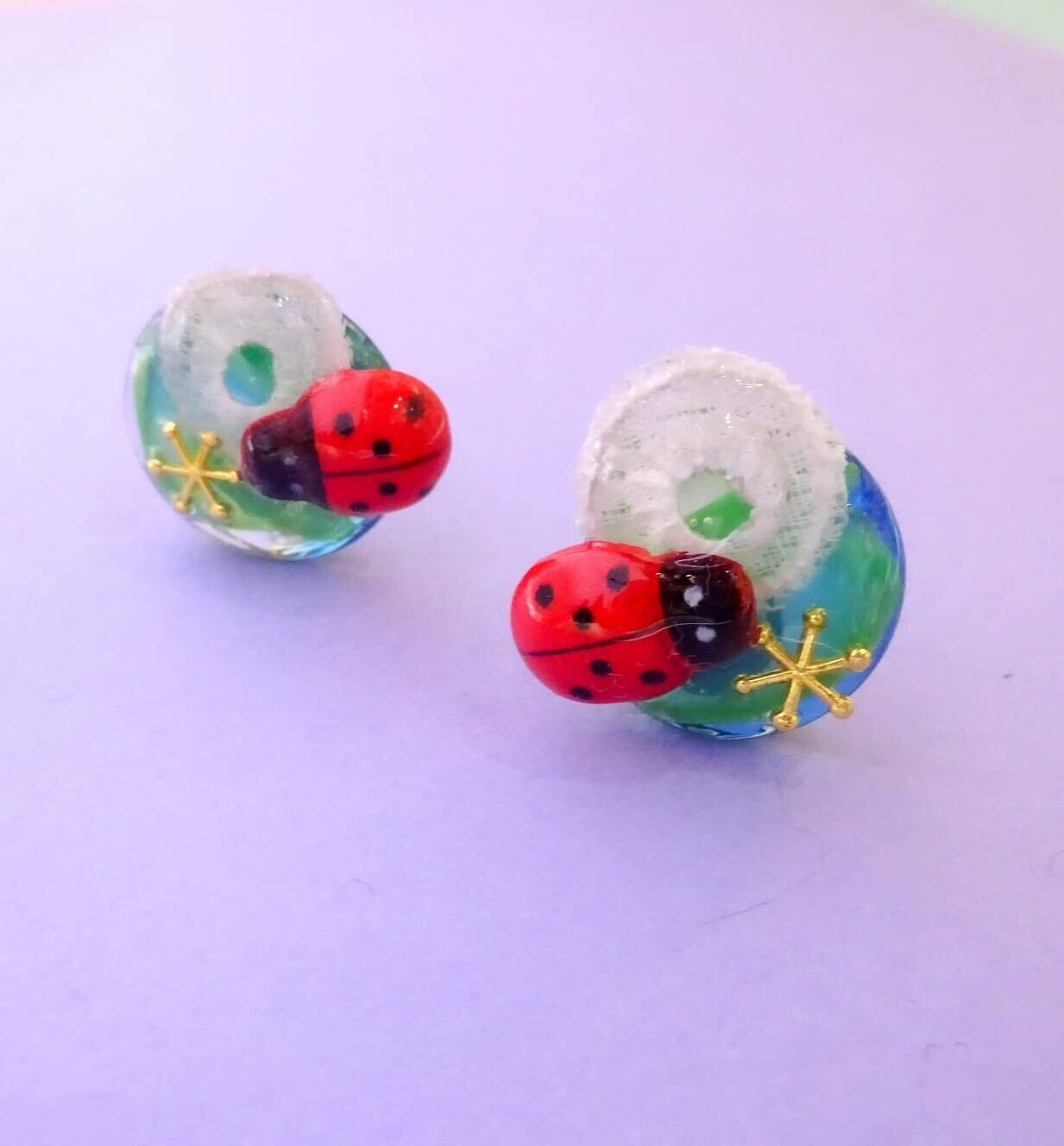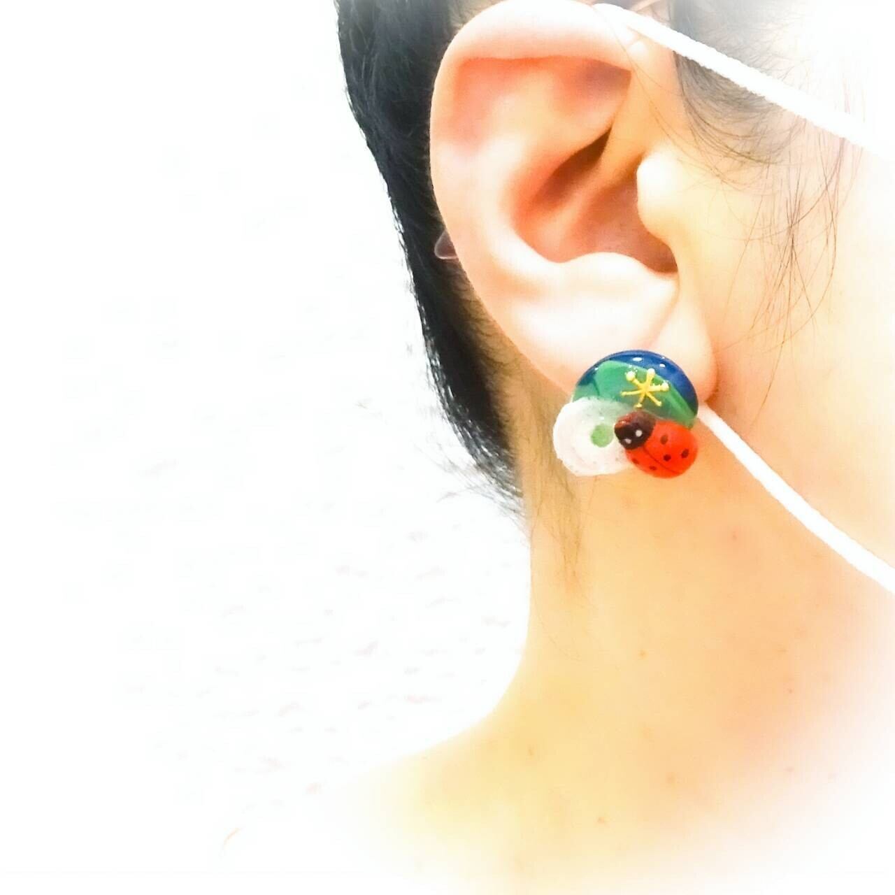 てんとう虫とかたつむり みどりの陶器 ピアス イヤリング タイル 生き物 でんでん虫 カタツムリ テントウムシ